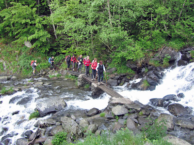 Atravesamos por un estrecho puente de madera el barranco de Pomèro